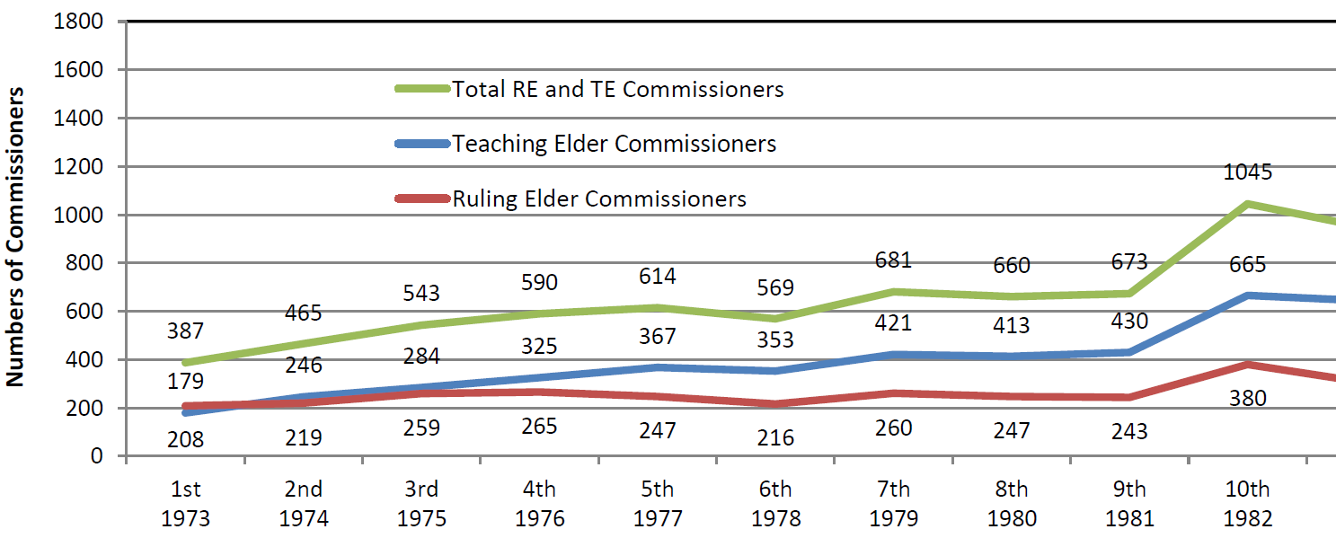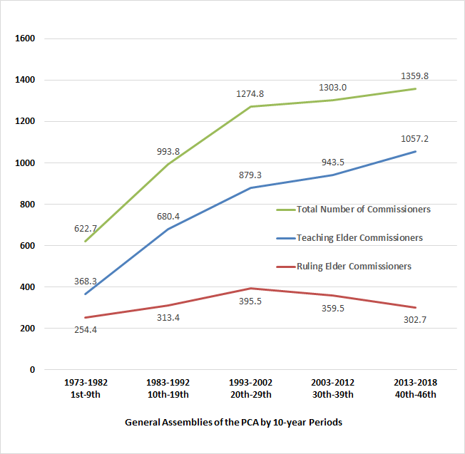 Table 1: Numbers of Teaching and Ruling Elder Commissioners Enrolled at the 1st through the 46th General Assemblies of the Presbyterian Church in America — 1973 through 2018.